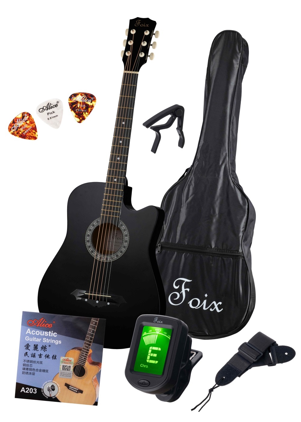Foix FFG-2038CAP-BK Акустическая гитара+Аксессуары, черная
