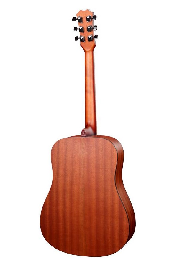 Дека выполнена из красного дерева и обладает очень плотным и пробивным звучанием, способным удивить даже самого опытного музыканта. Большой и объёмный корпус «дредноут» знаком всем тем, кто играет или ещё только хочет начать играть на гитаре. Гриф шириной 48 мм с D-образным профилем, позволят Вам играть с комфортом. Надёжное шип-пазное соединение грифа с корпусом "Ласточкин хвост" обеспечит Вам долгий срок службы инструмента. Натуральная отделка с открытыми порами не сковывает древесину, позволяя раскрыться звучанию инструмента в полной мере, и даёт возможность оценить природную красоту красного дерева.