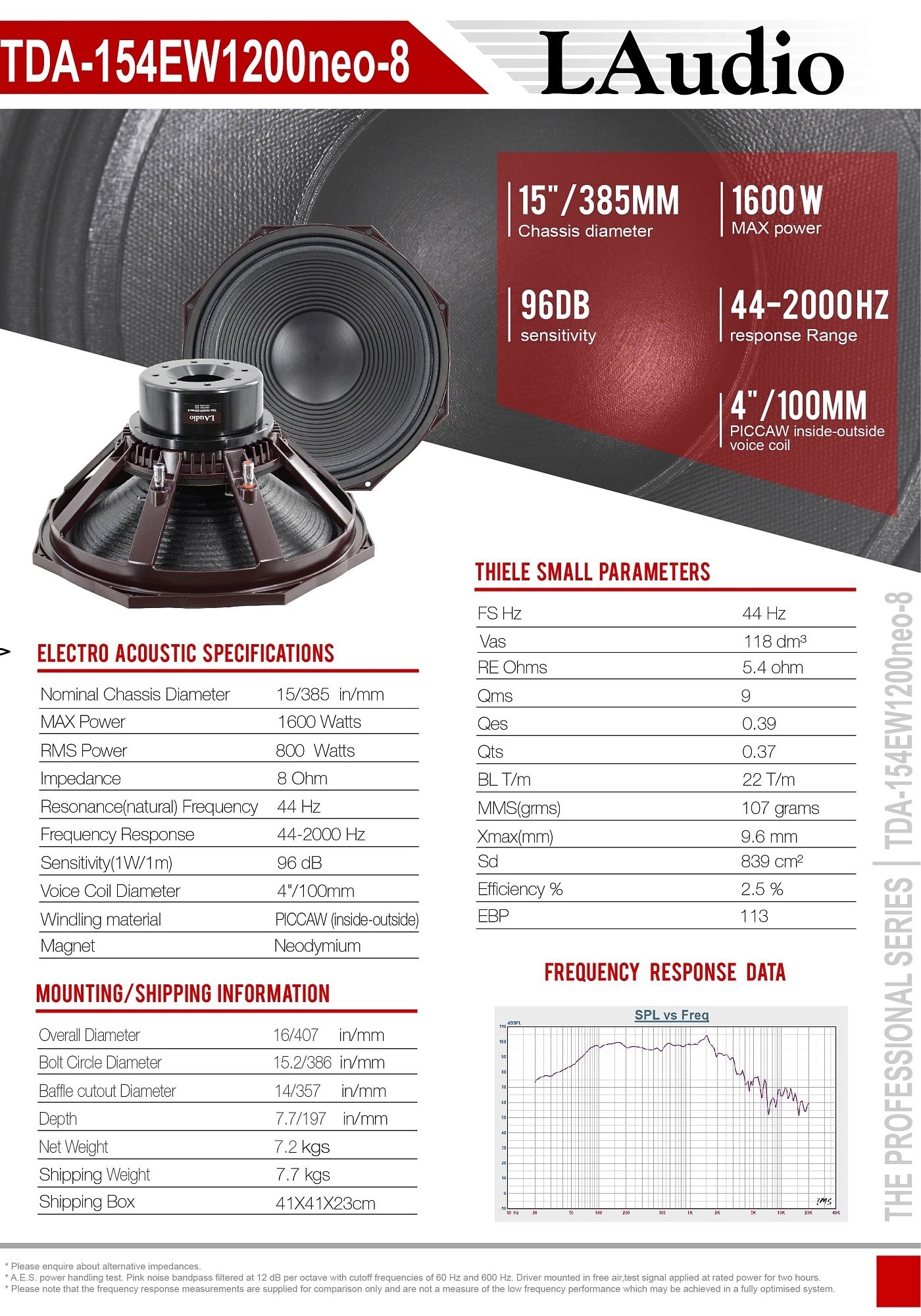 Резонансная частота (Fs): 44 Гц.