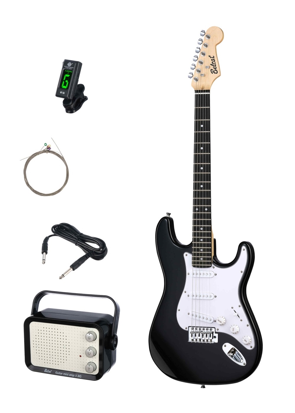 Belcat BST-KIT-BK Электрогитара с комбоусилителем и аксессуарами, черная
