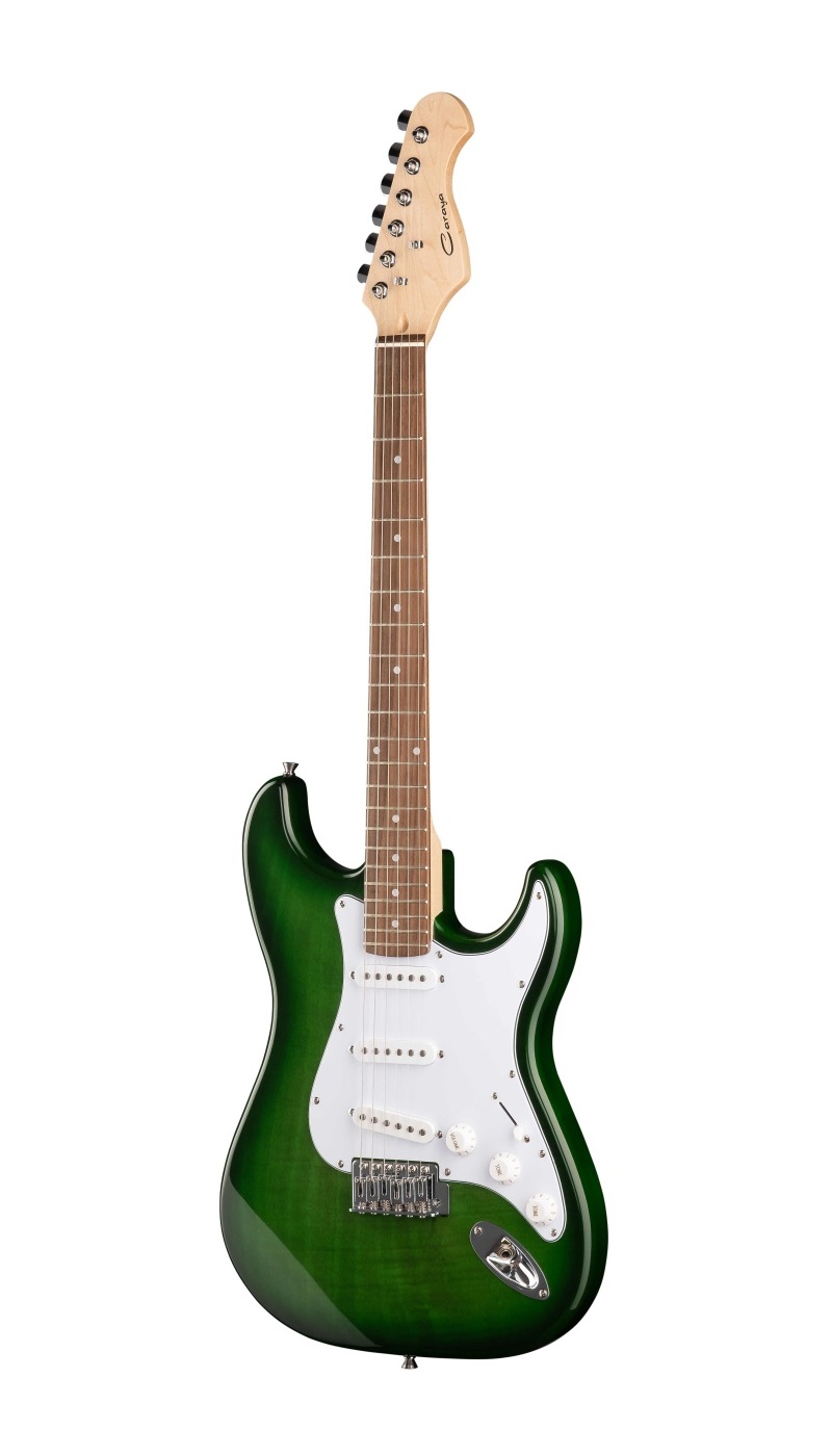 Шестиструнная электрогитара зелёного цвета. Корпус гитары типа «Stratocaster» изготовлен из древесины твердых пород и имеет защитную пластину белого цвета. Гриф изготовлен из клена, накладка грифа из палисандра.