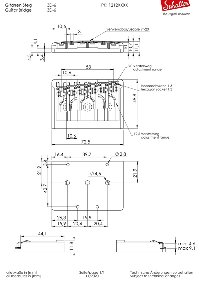 Schaller 3D-6 – запатентованный плоский бридж для гитар.
