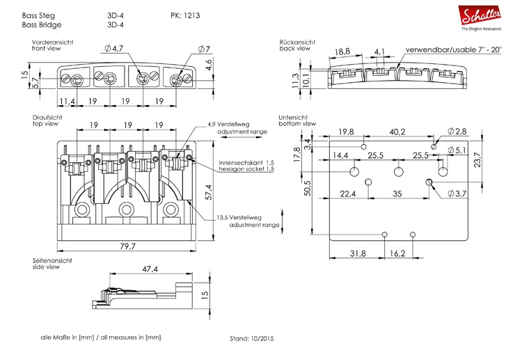 Schaller 3D-4 – запатентованный бридж для 4-струнных бас-гитар.