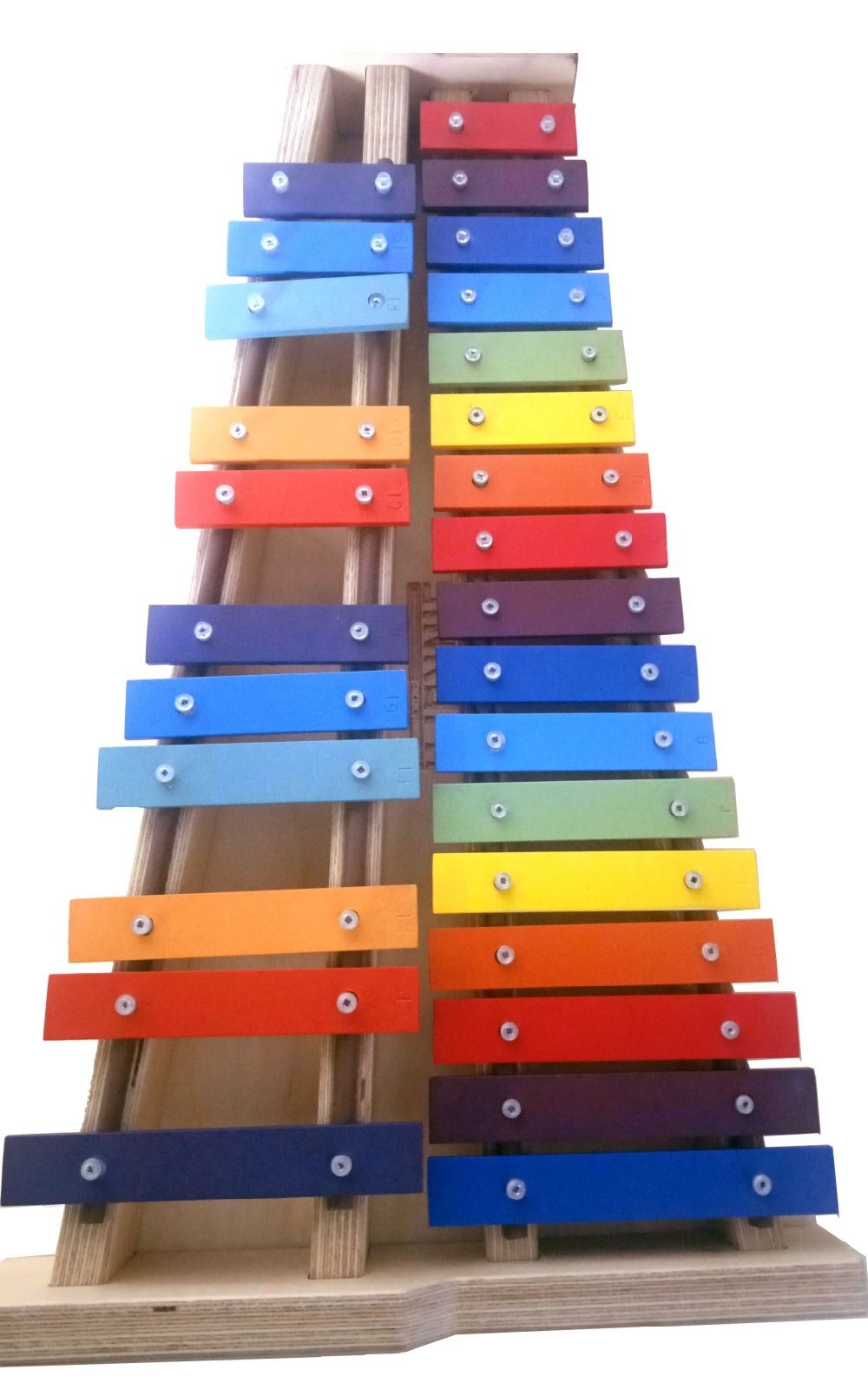 Съемные пластины позволяют использовать необходимый для исполнительско-педагогической задачи диапазон и строй (например, только пентатонику).