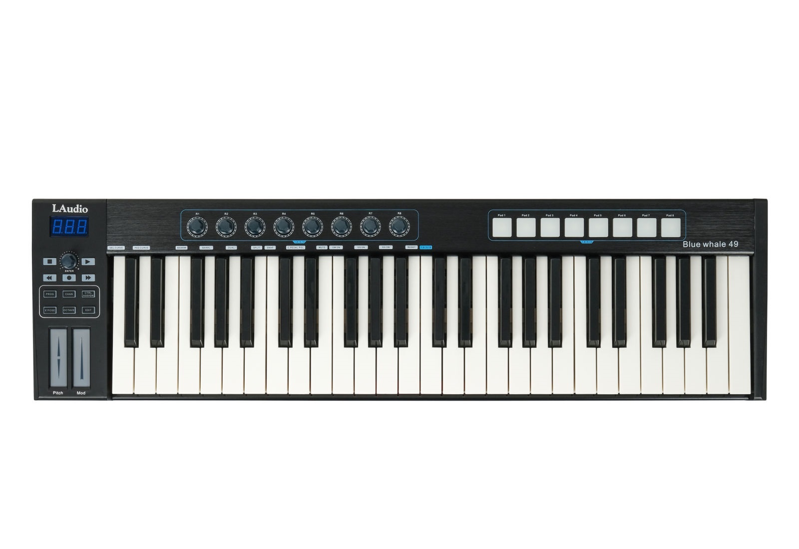 8 высококачественных чувствительных к скорости и силе нажатия назначаемых пэдов с RGB подсветкой.