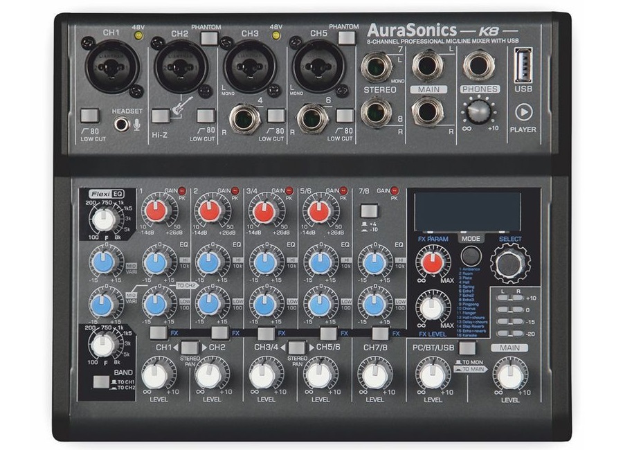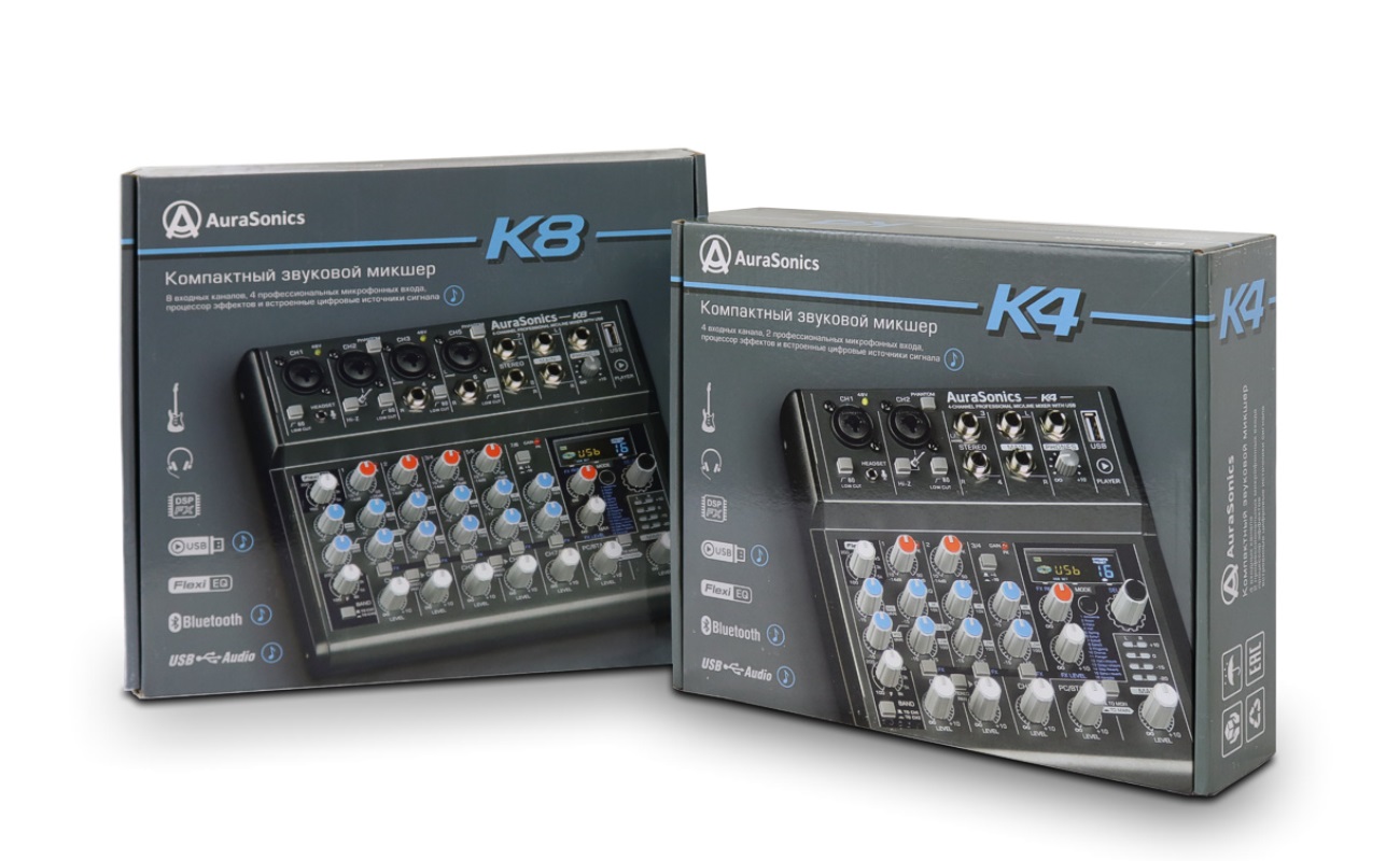 Аналоговые микшеры AuraSonics K4 и K8 созданы для широкого круга применения. Это могут быть репетиции, звукозапись, выступления перед аудиторией, стримы, монтаж видео и просто воспроизведение музыки.