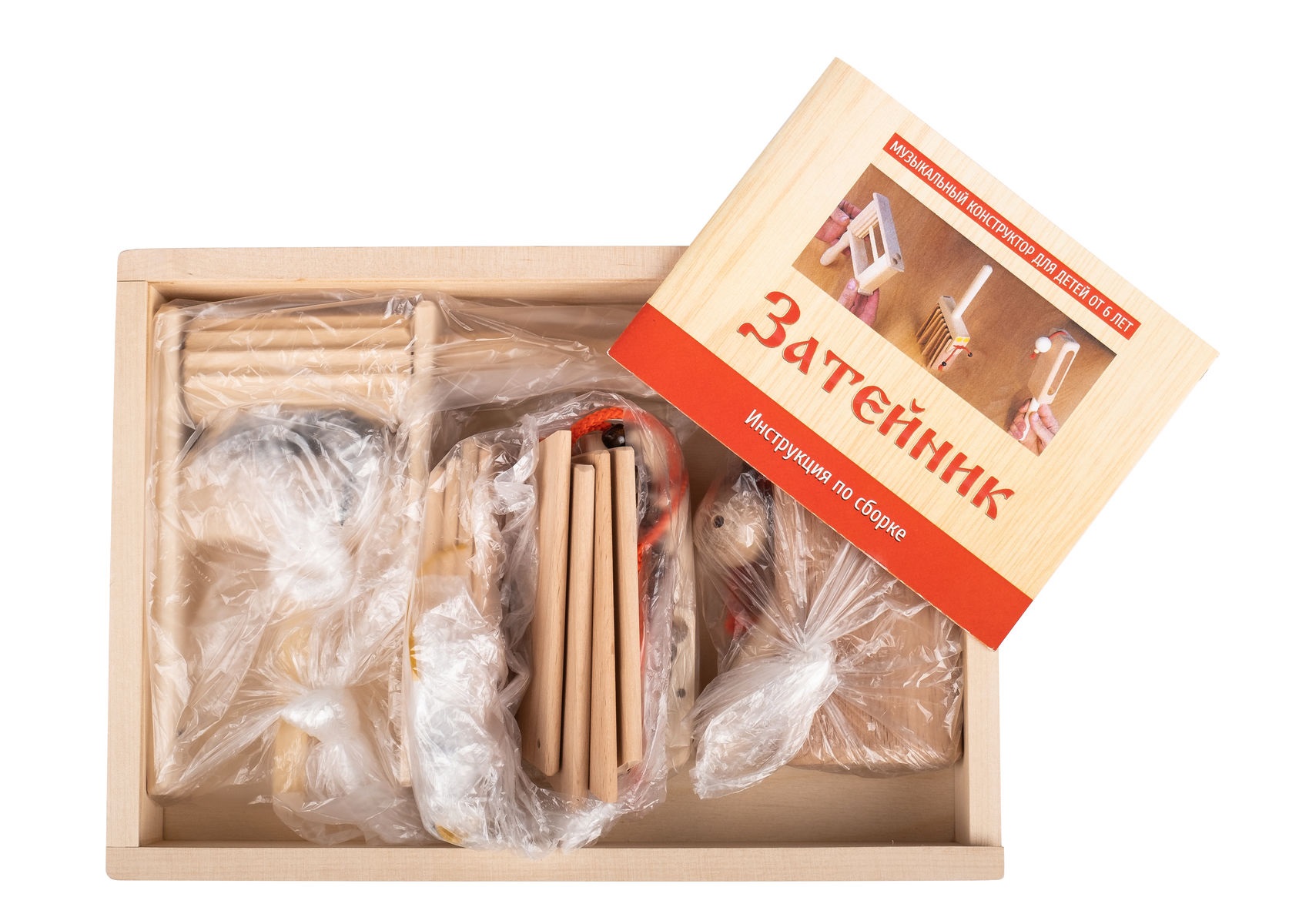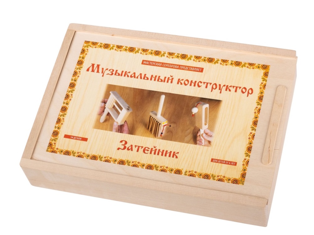 Музыкальный конструктор «Затейник» состоит из деталей для сборки следующих музыкальных инструментов Мастерской Сереброва: