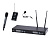 1 приемник, 1 ручной передатчик, 1 поясной передатчик с микрофоном петличкой.