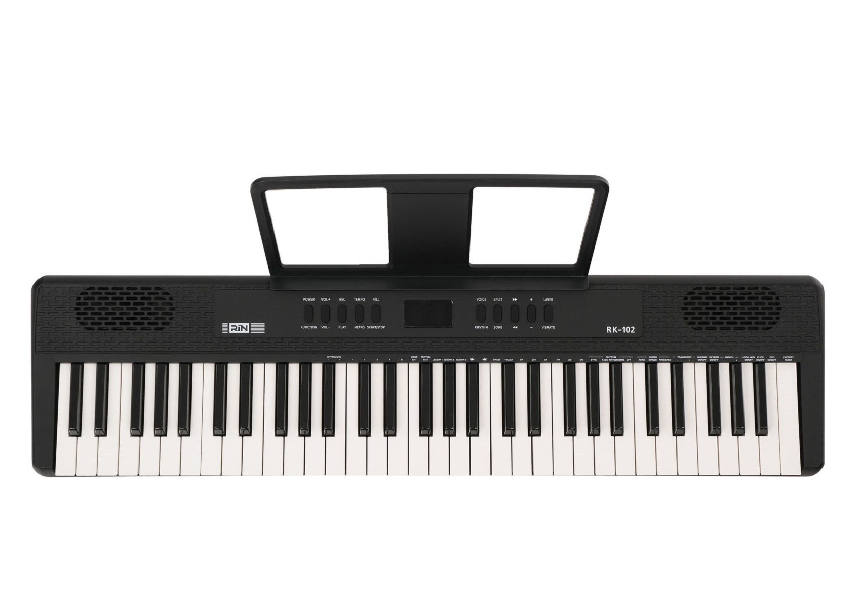 Управление эффектами: темп, транспонирование, метроном, сустейн, вибрато, реверберация, два инструмента, разделение клавиатуры, чувствительность к силе нажатия.