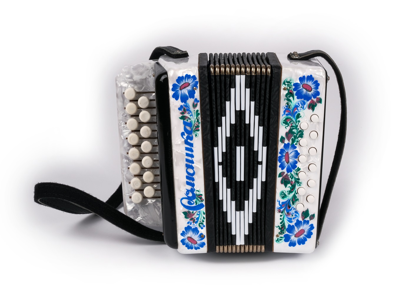 Гармонь "Ромашка" 15х12-I, белая, палехская роспись