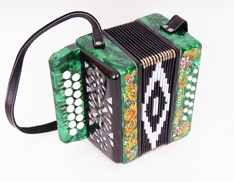 Одноголосая гармонь без регистра, звукоряд основан на неполной хроматической гамме.