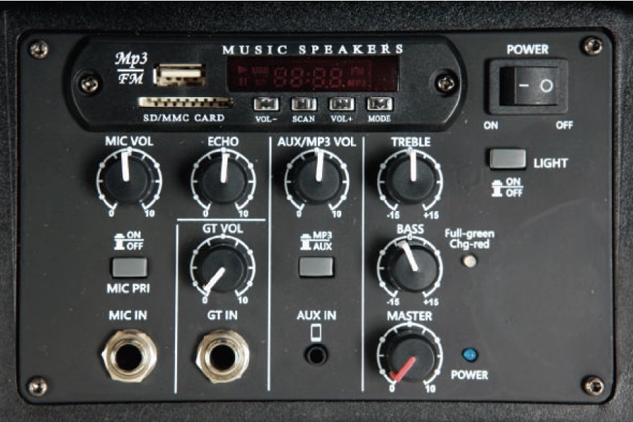Портативная акустическая система с USB и SD входом, MP3-плеером, модулем Bluetooth и яркими цветными светодиодами.