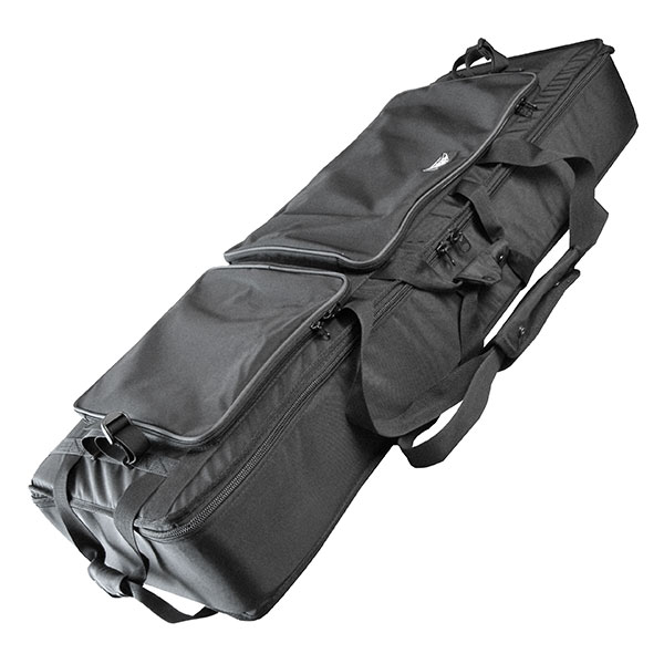 Cover with zipper, 2 outside pockets, long and short handles, feet.