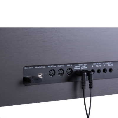 Подключения: Bluetooth, линейный выход L/R, линейный вход L/R, USB to Host, Midi In/Out/Thru, два гнезда педалей, питание.