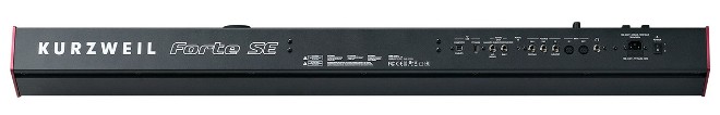 Стоит обратить внимание на то, что KURZWEIL FORTE SE имеет не цветной, а монохромный LCD-дисплей невысокого разрешения (240 × 64 пикселей), меньший вес (18,5 кг) и не столь широкие коммутационные возможности. В комплект поставки включены USB-кабель и педаль KURZWEIL CC-1