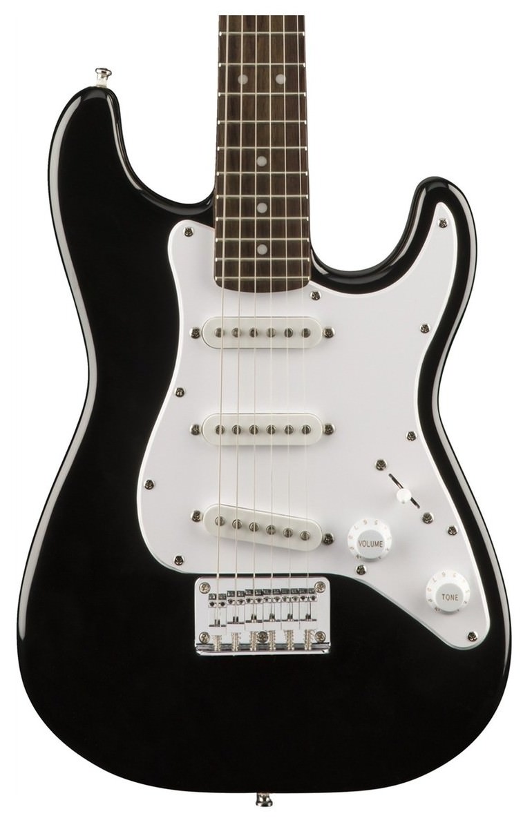 Fender Squier Mini Strat V2 BLK – уменьшенная (3/4) версия гитары Bullet® Strat® с мензурой 22,75 дюйма (578 миллиметров). Это идеальная недорогая гитара для путешествий и поездок, легкая и компактная, неприхотливая. Модель также прекрасно подойдёт для начинающих гитаристов и обучающихся игре на электрогитаре. Гитара имеет корпус классической узнаваемой формы Stratocaster® с удобными вырезами и гриф профиля «C». Дека гитары сделана из ламинированной твердолиственной древесины, гриф – кленовый. На грифе 20 ладов medium, инкрустированных перламутровыми точками. Звукосниматели – 3 сингла Standard Single-Coil Strat. Переключатель – пятипозиционный. Настройка звука осуществляется регуляторами громкости и тембра. Фиксированный 6-Saddle Vintage-Style обеспечивает стабильность строя. Представленная модель – стильного чёрного цвета с полиуретановым покрытием и контрастным однослойным белым пикгардом. На гитаре установлены струны Fender® USA 250L, NPS толщиной .009 - .042.