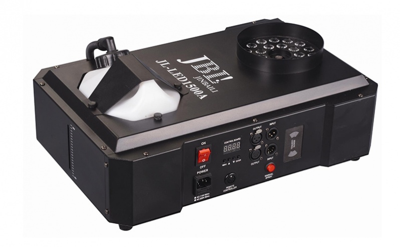 Генератор дыма вертикального распыления, оснащен 24 RGB светодиодами. Подходит для использования как внутри помещений, так и на открытом воздухе. Прибор можно установить на поверхность или повесить на стену.