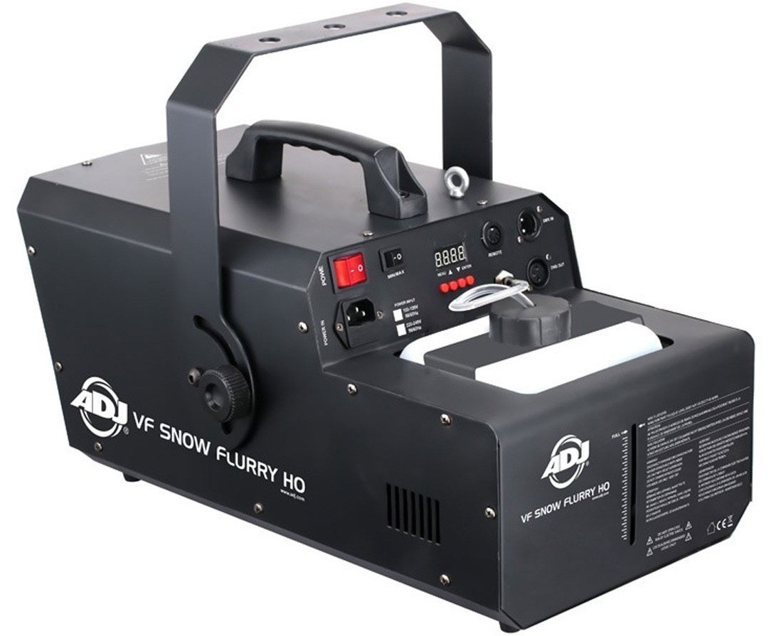 Генератор снега мощностью 1250 Вт, область действия: 8- 10 м, переключатель уровня выработки снега: низкий или высокий, датчик низкого уровня жидкости для защиты насоса.