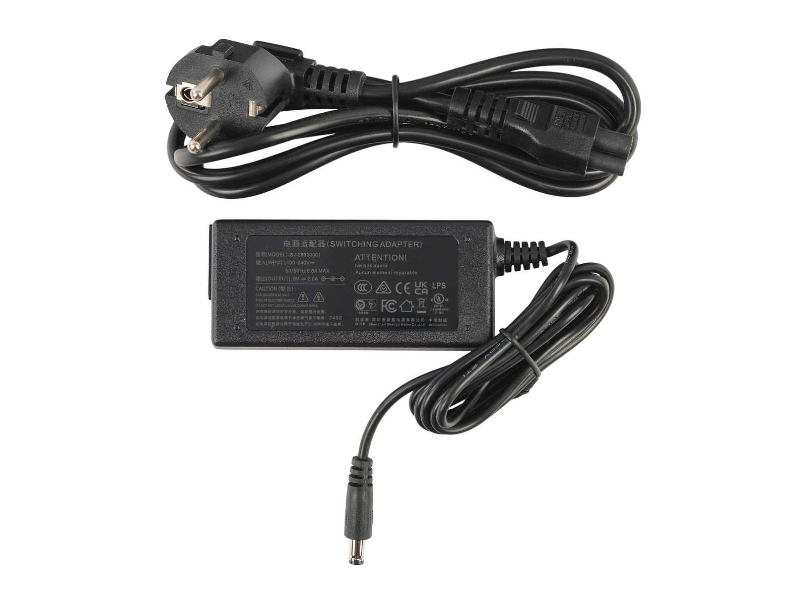 DC IN: входное гнездо питания 9 В, минус в центре.