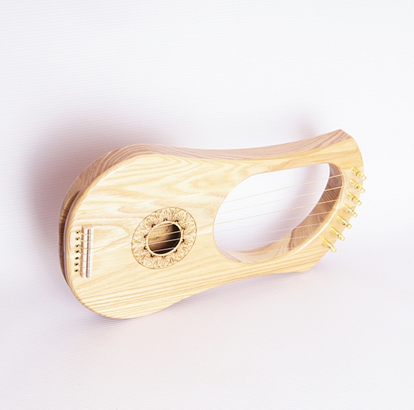 Лира 7-струнная, с резонаторным корпусом из массива ясеня, что дает теплый музыкальный звук с хорошим резонансом.