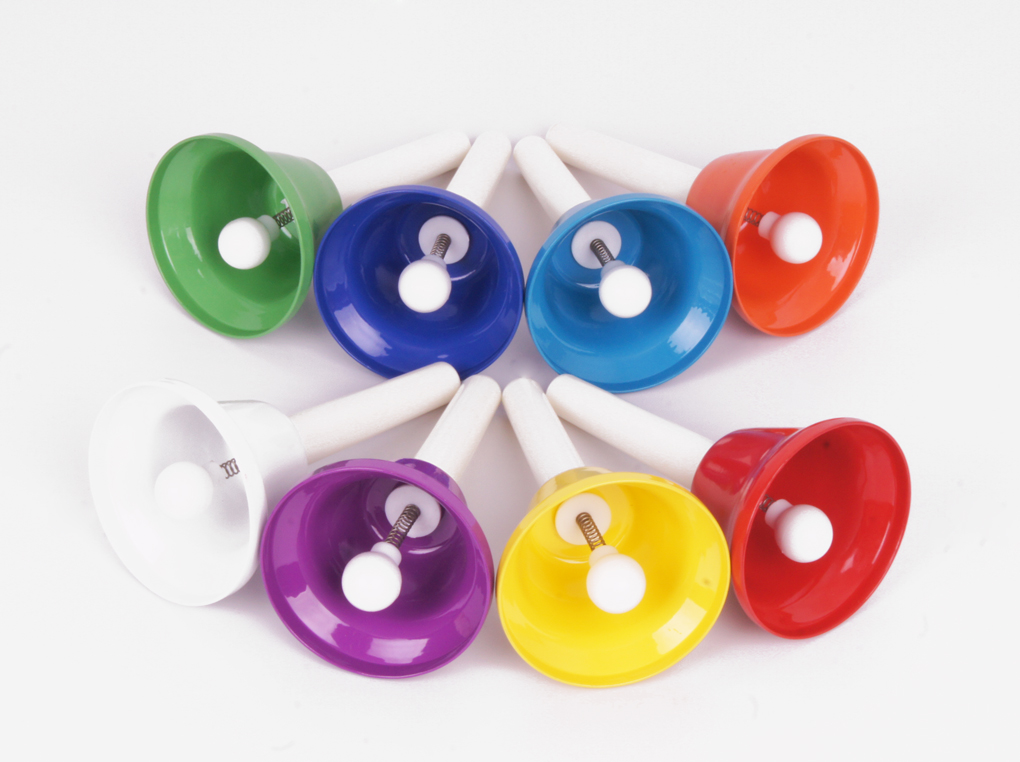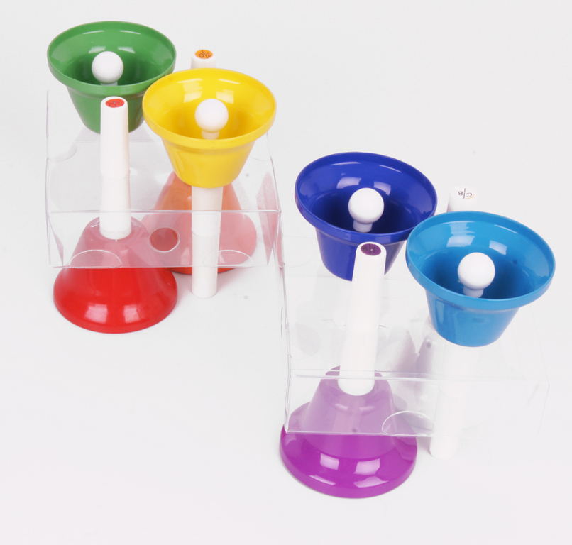 Цветные колокольчики с язычками, на ручках, 8шт по нотам  в упаковке.