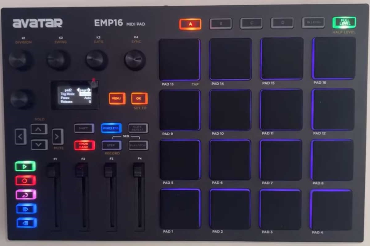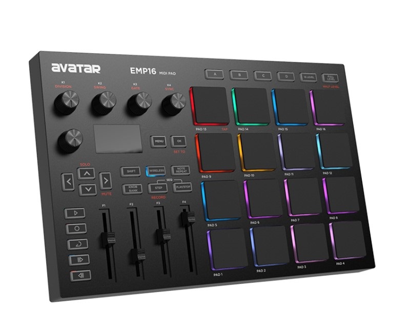 16 пэдов с динамической характеристикой, для удобства работы можно настроить различную цветовую индикацию.