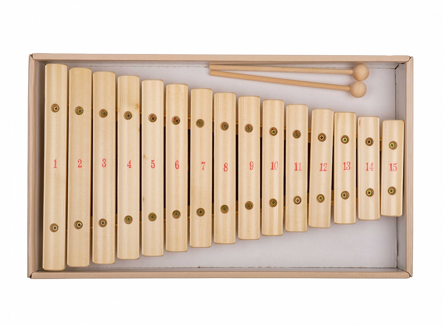 2. В комплектацию ксилофонов и металлофонов не будут вкладываться книжечки с мелодиями для ксилофонов и металлофонов. Все доступно для скачивания в карточках товаров соответствующих ксилофонов и металлофонов на сайте (например, https://masteras.ru/t/ksilofon-diatonicheskij-15-plastin/).