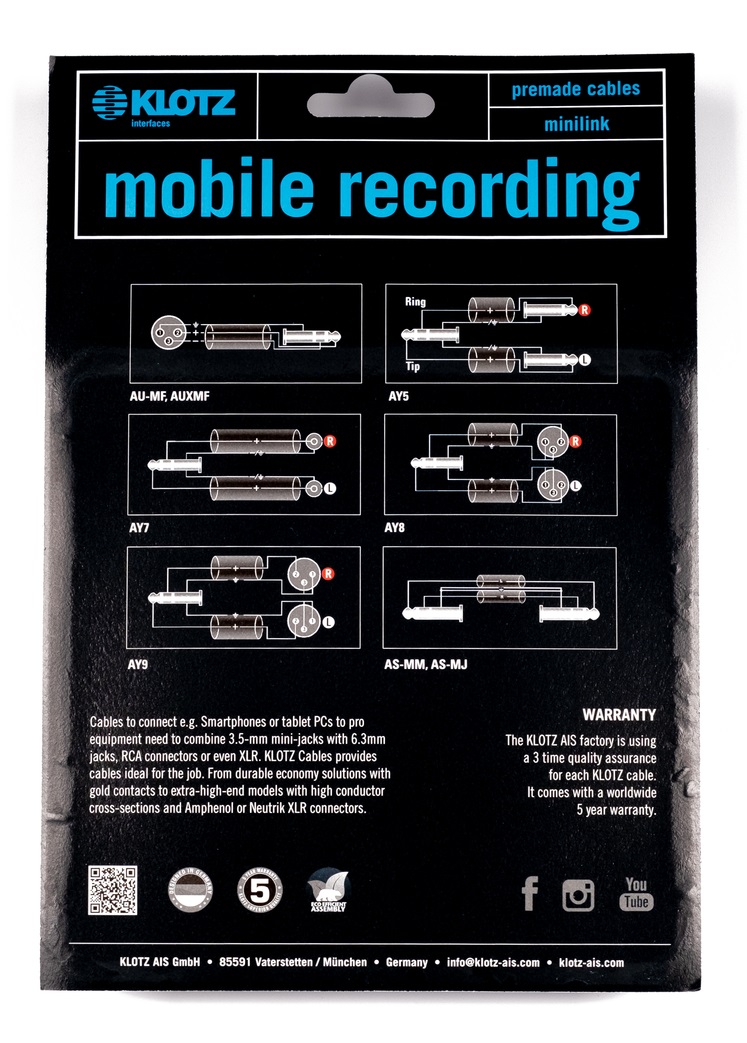 Соединительные кабели отвечают за многие ключевые задачи в студии и на сцене. Они должны быть компактными, тонкими и особенно долговечными, чтобы выдерживать частое подключение и отключение. Кабели Y-типа используются для разделения сигналов от стерео разъемов на левый и правый каналы.
