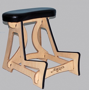 Сиденье стула сделано из пенополиуретана, обтянуто экокожей, имеет изгиб, повторяющий заднюю часть деки для максимальной устойчивости виолончели при хранении.