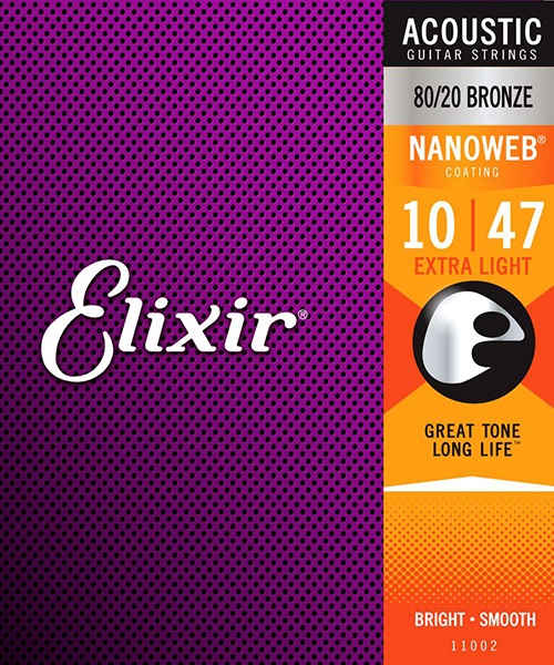 Elixir 11002 Nanoweb Комплект струн для акустической гитары, Extra Light, бронза 80/20, 10-47
