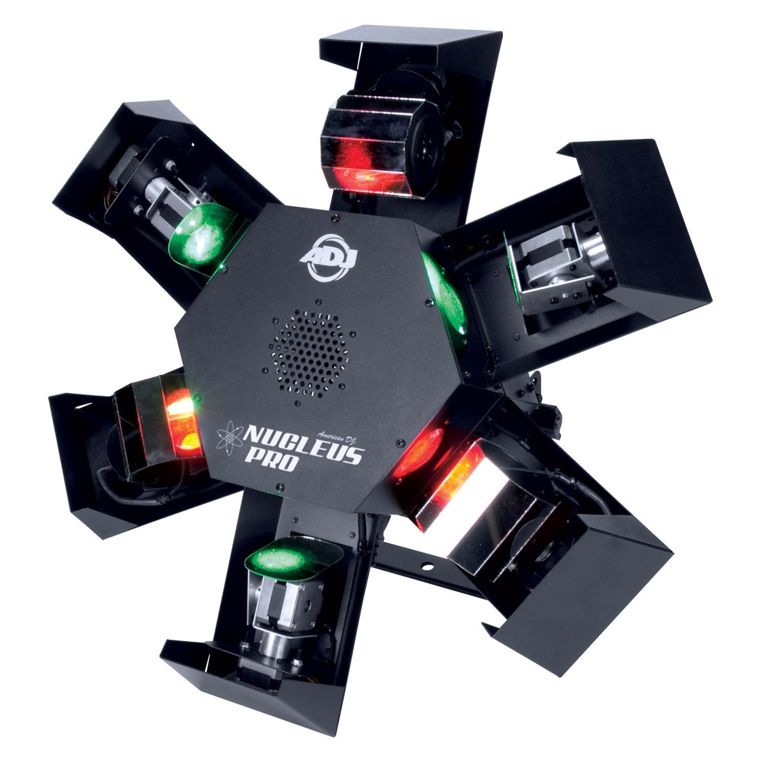 ADJ Nucleus Pro – центральный светодиодный светильник, создающий потрясающие визуальные эффекты! Три встроенных программы освещения используют три плоских сканирующих зеркала и три зеркальных барабана, работающие от бесперебойных шаговых двигателей с шагом 1,8 градуса. Nucleus Pro работает от шести великолепных 10 Вт светодиодов Quad Color (30000 ч, RGBW, 4-в-1). Кроме того, пользователи могут воспользоваться функциями DMX этого устройства с 3 режимами DMX, 4-кнопочным светодиодным дисплеем DMX и входом/выходом DMX или простым UC3-контроллером (продается отдельно). Эта система великолепно подходит для стационарных установок, имеет небольшую массу и удобна при перевозке для выездных выступлений.