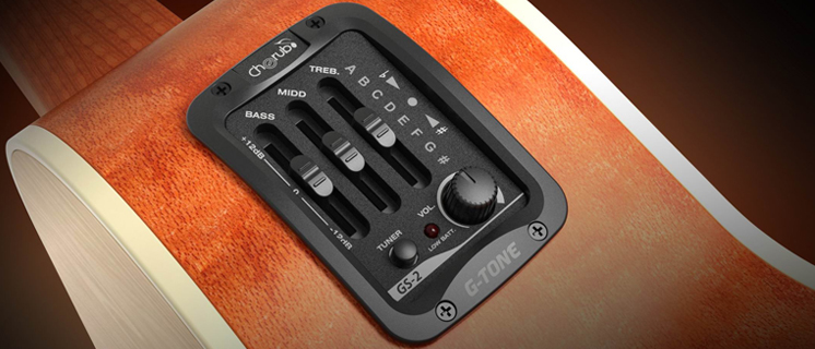 GS-2 Эквалайзер для акустической гитары, врезной, 3-х полосный, с тюнером, Cherub
